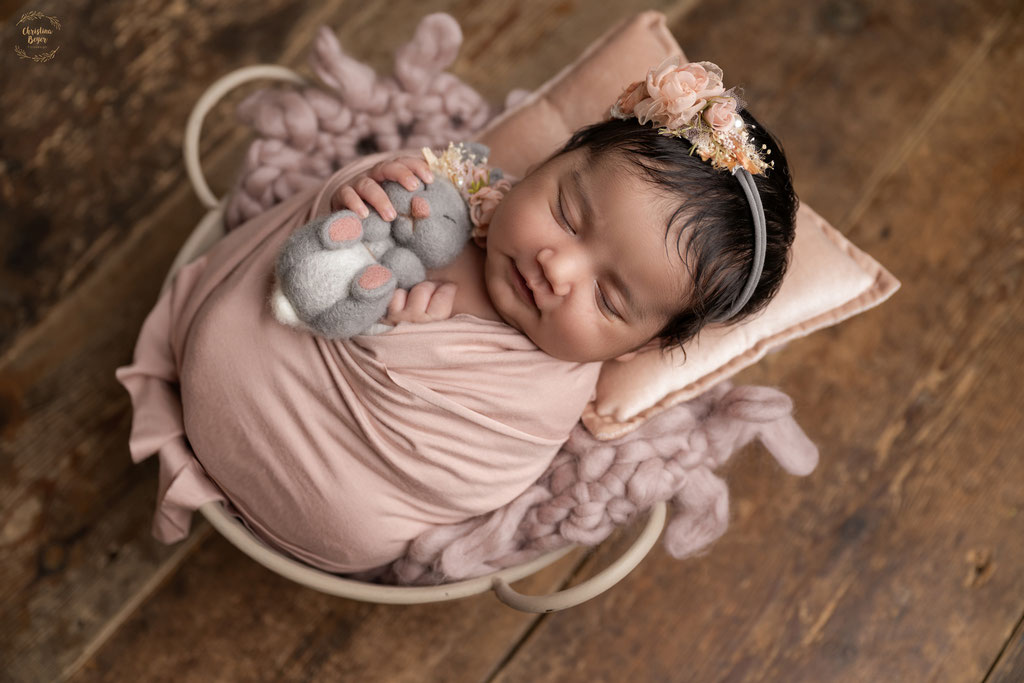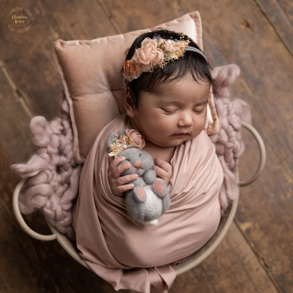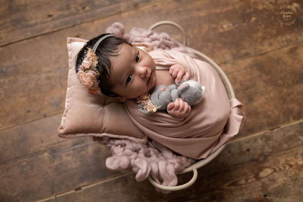 Altrosa ist nach wie vor die beliebteste Farbe für Baby Mädchen und wird bei einem Babyshooting am häufigsten ausgesucht.
